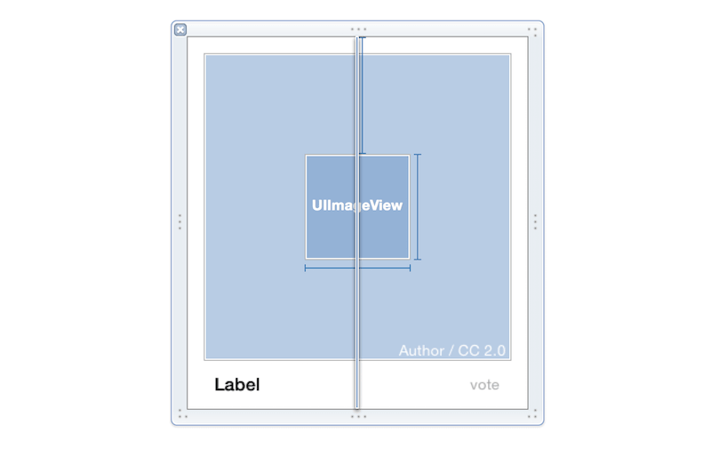 你可以見到,圖像視圖水平置中,寬度與高度皆固定為100點,跟上方保持固定間距,能確保將其置於貓咪圖像視圖的正中間。